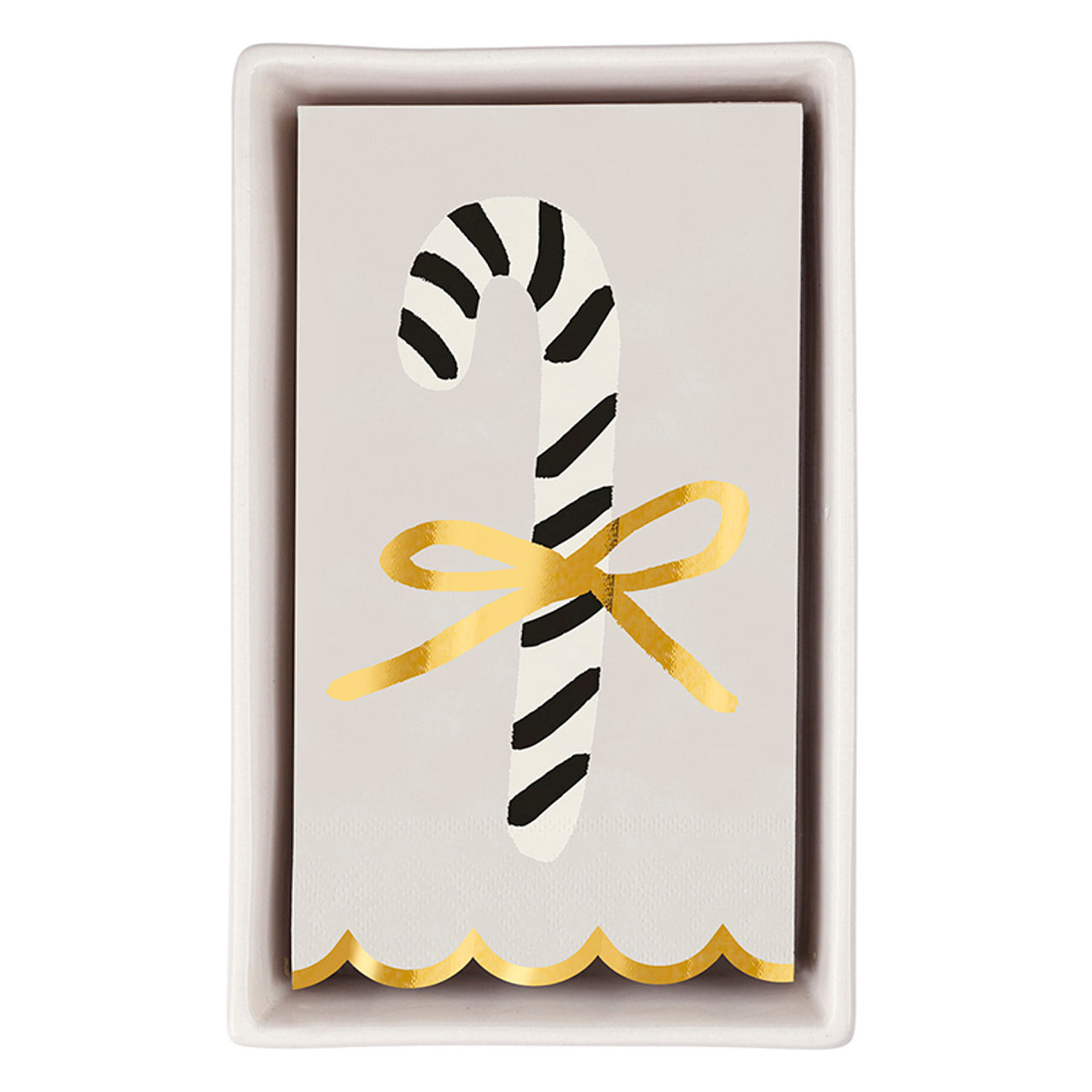 CERAMIC GUEST NAPKIN TRAY + NAPKINS - CANDY CANE