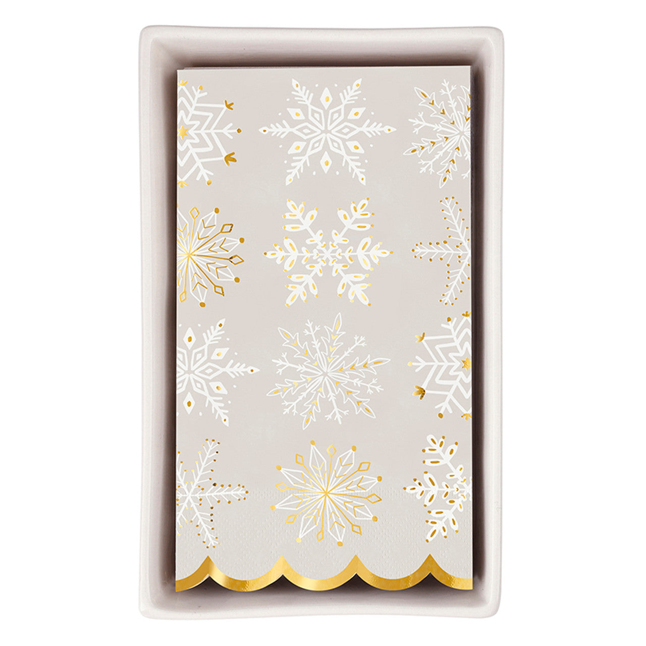 CERAMIC GUEST NAPKIN TRAY + NAPKINS - SNOWFLAKES