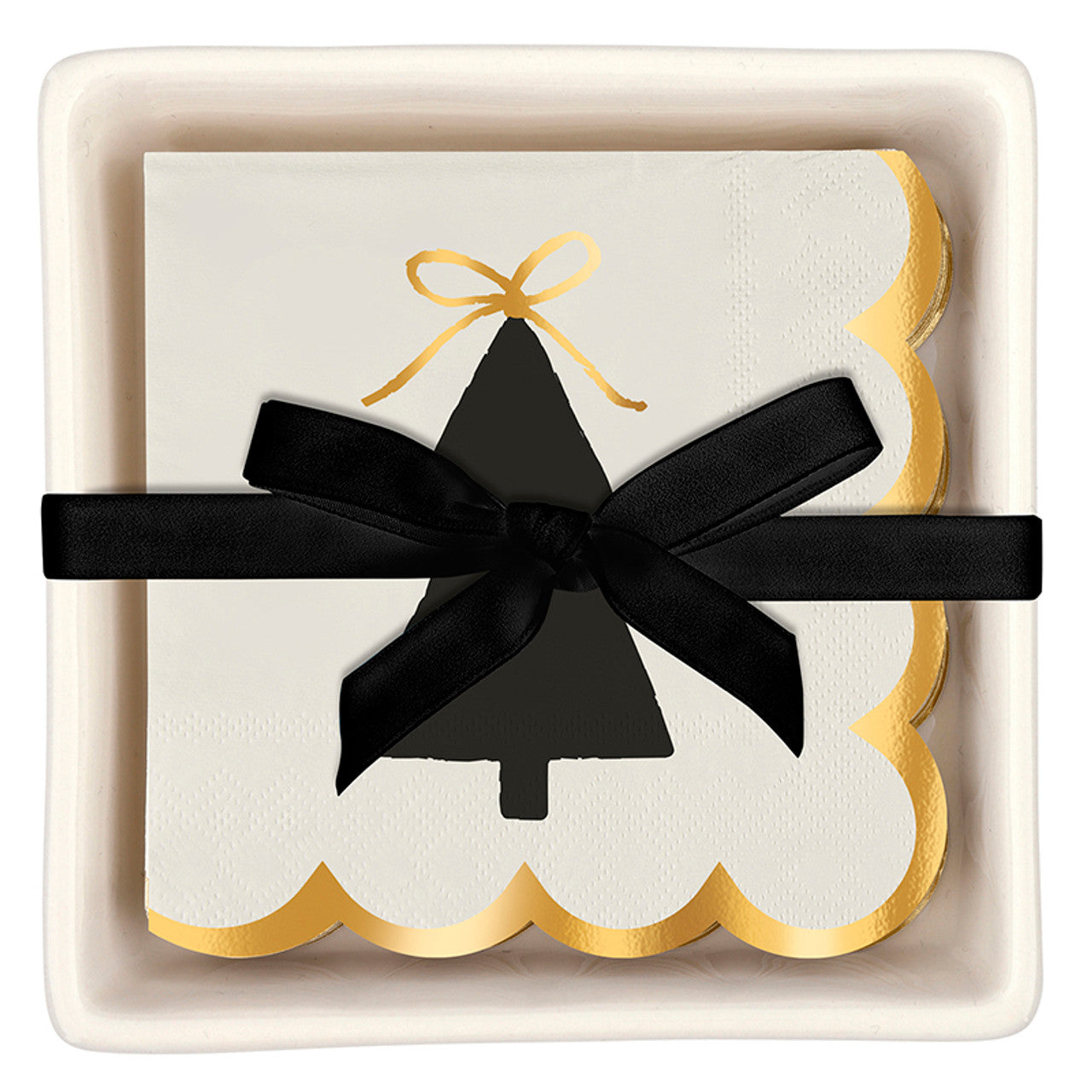 CERAMIC NAPKIN TRAY + NAPKINS - BOW TREE