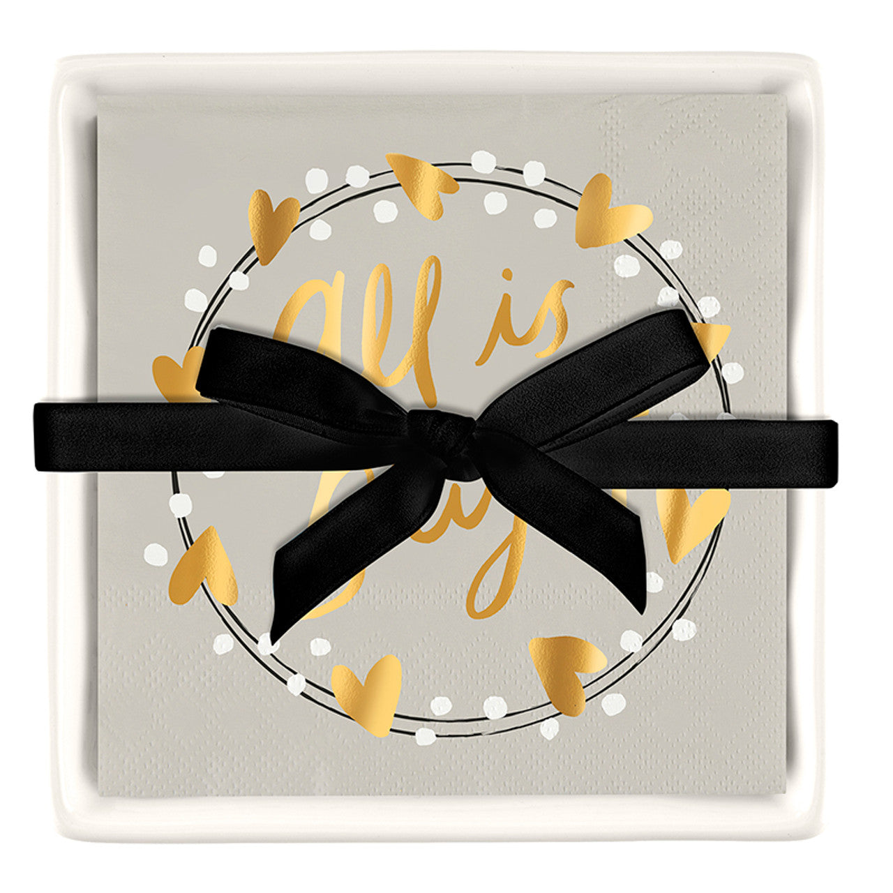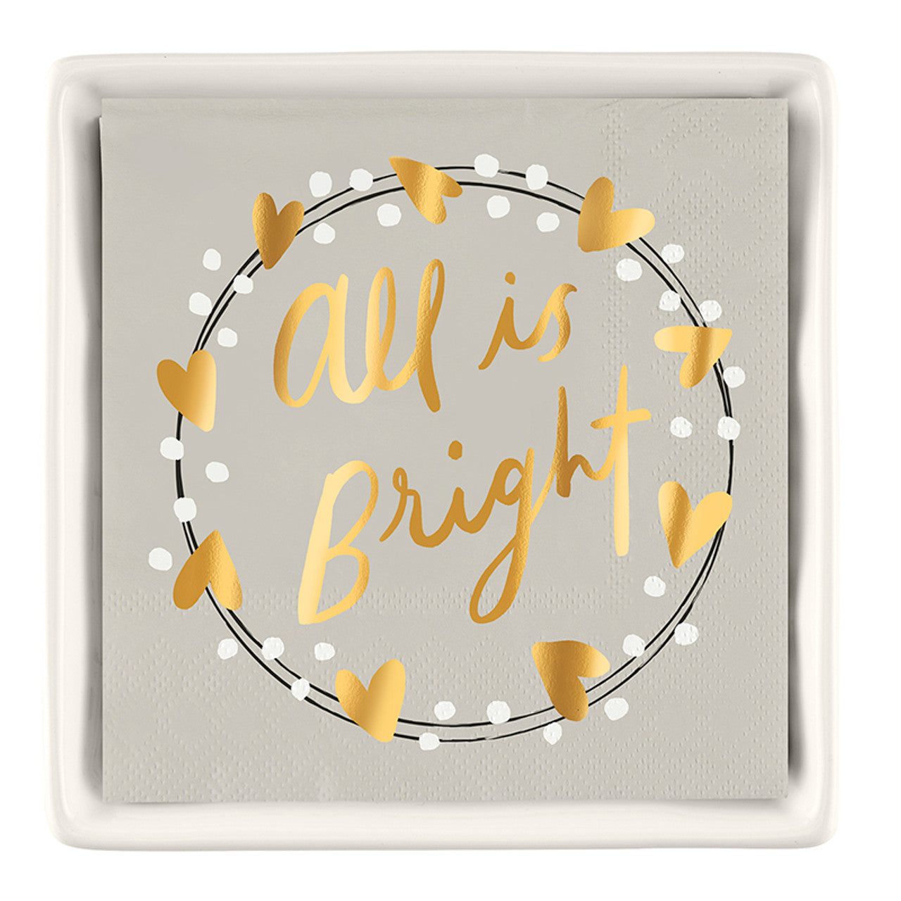 CERAMIC NAPKIN TRAY + NAPKINS - ALL IS BRIGHT