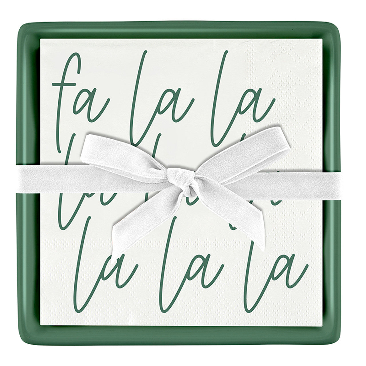 CERAMIC TRAY + NAPKINS - FA LA LA LA