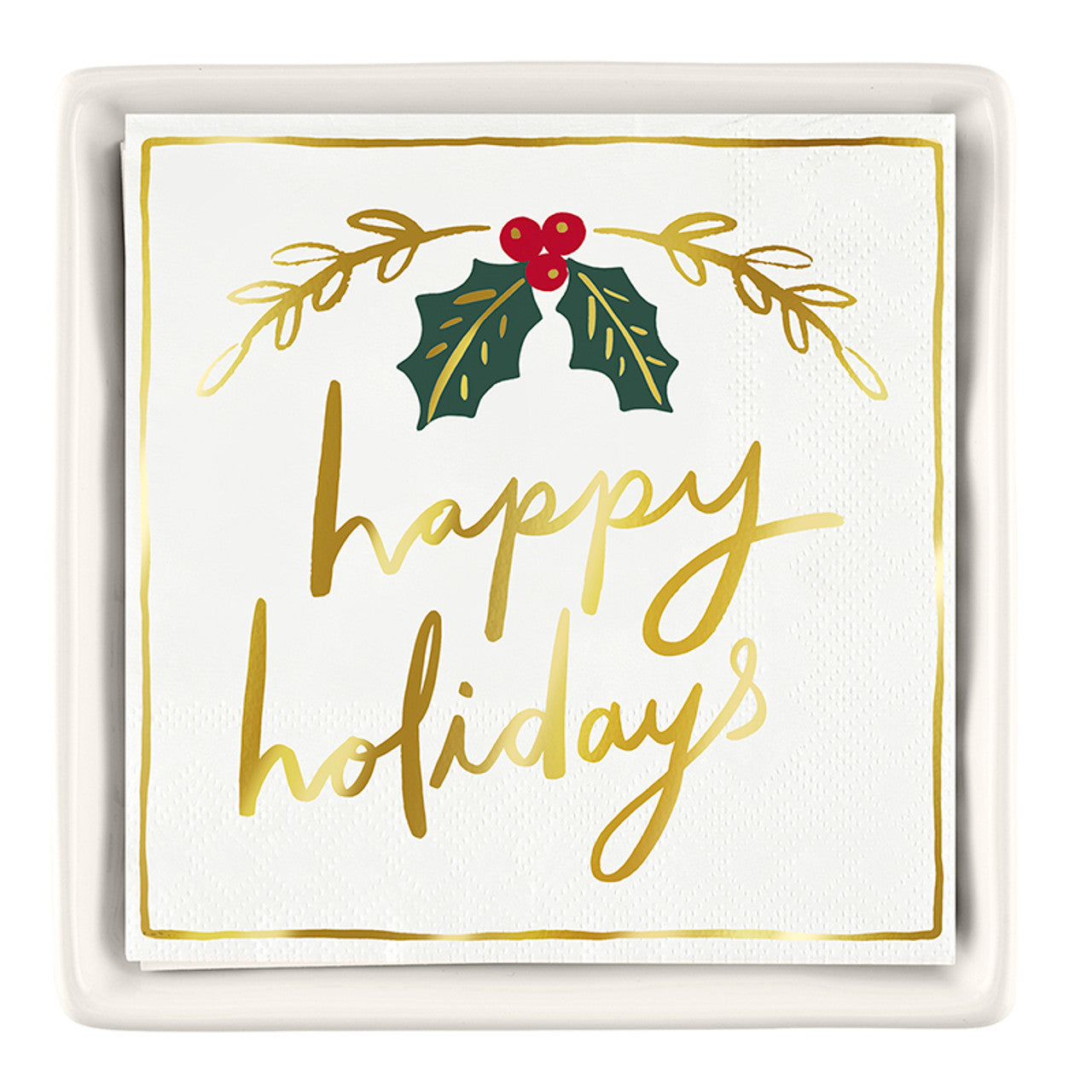 CERAMIC NAPKIN TRAY + NAPKINS - HAPPY HOLIDAYS
