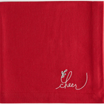 Celebrate the season with the Holiday "Cheer" Red Sentiment Cloth Napkin, a refined addition to your festive table. Crafted from high-quality fabric, its vibrant red hue and elegant "Cheer" script bring warmth and sophistication to holiday gatherings. Designed to blend durability with a soft, luxurious feel, this napkin enhances every place setting with timeless holiday charm.