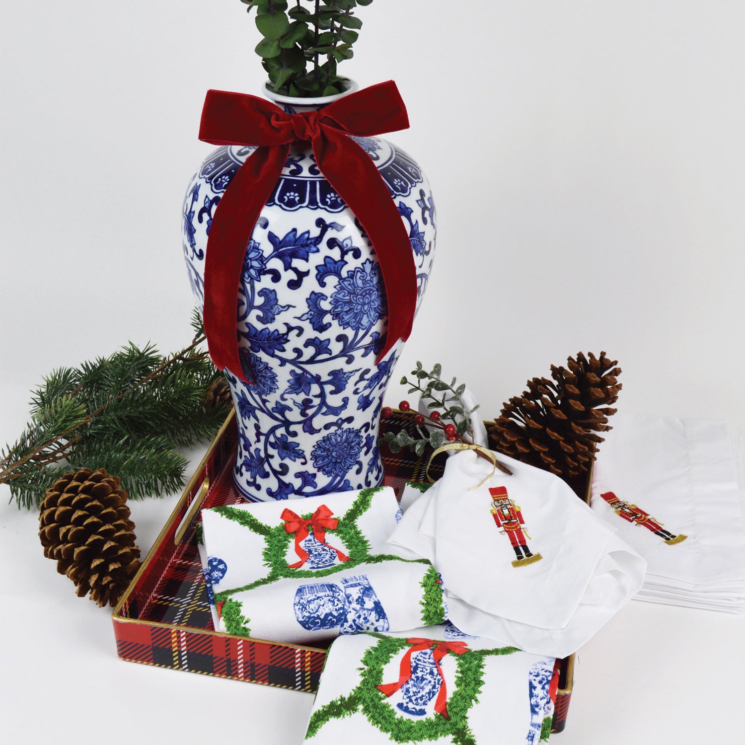 RED PLAID SQUARE TRAY