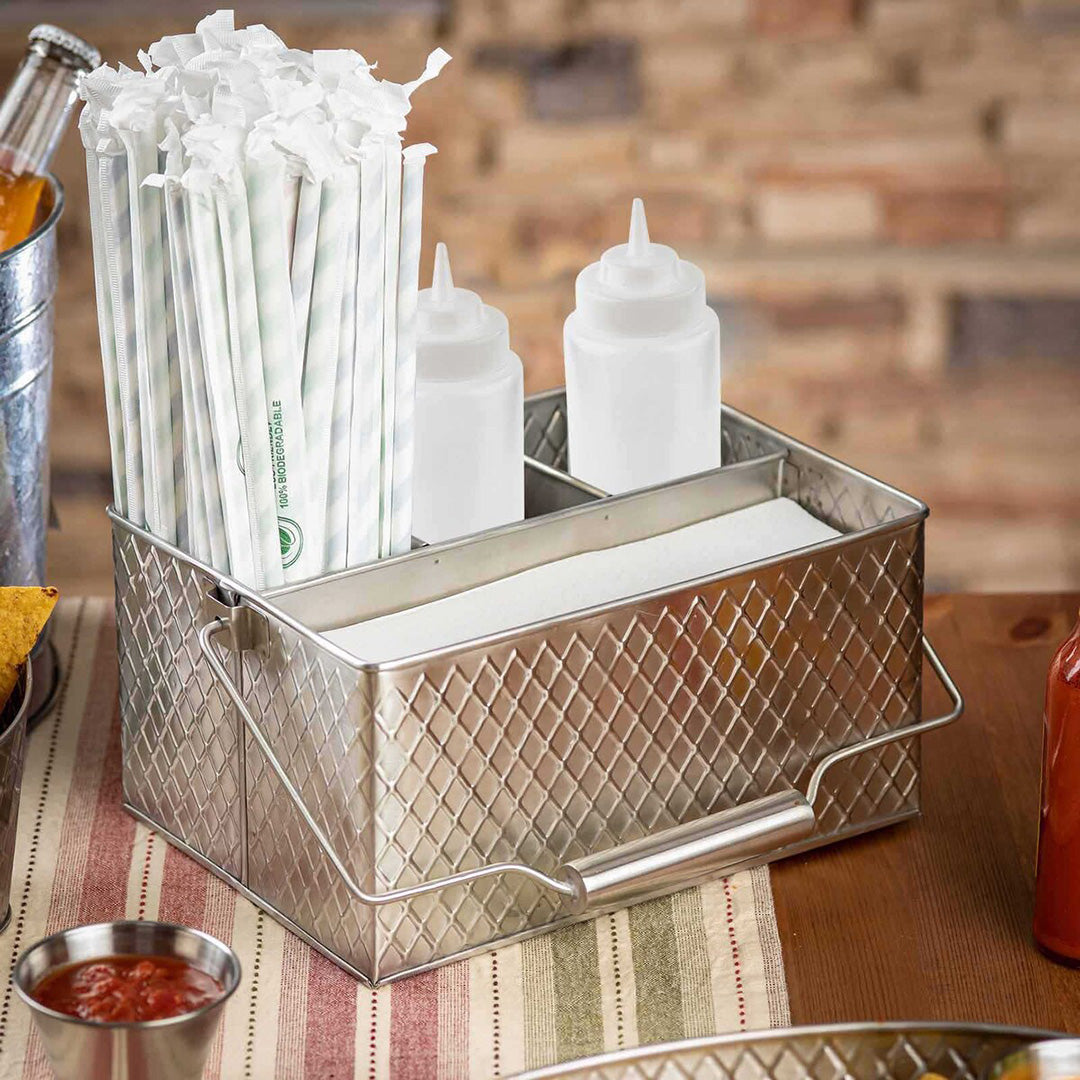 Add a touch of whimsy to your dining table with the Silver Lattice Flatware Caddy. It's fun, open lattice design keeps your utensils organized and easy to grab, turning everyday meals into a stylish event. Perfect for keeping your flatware tidy with a playful sparkle! And the Stainless Steel construction gives each piece the durability needed in an outdoor setting, while the embossed basket-weave pattern brings a relaxed elegance to the table.