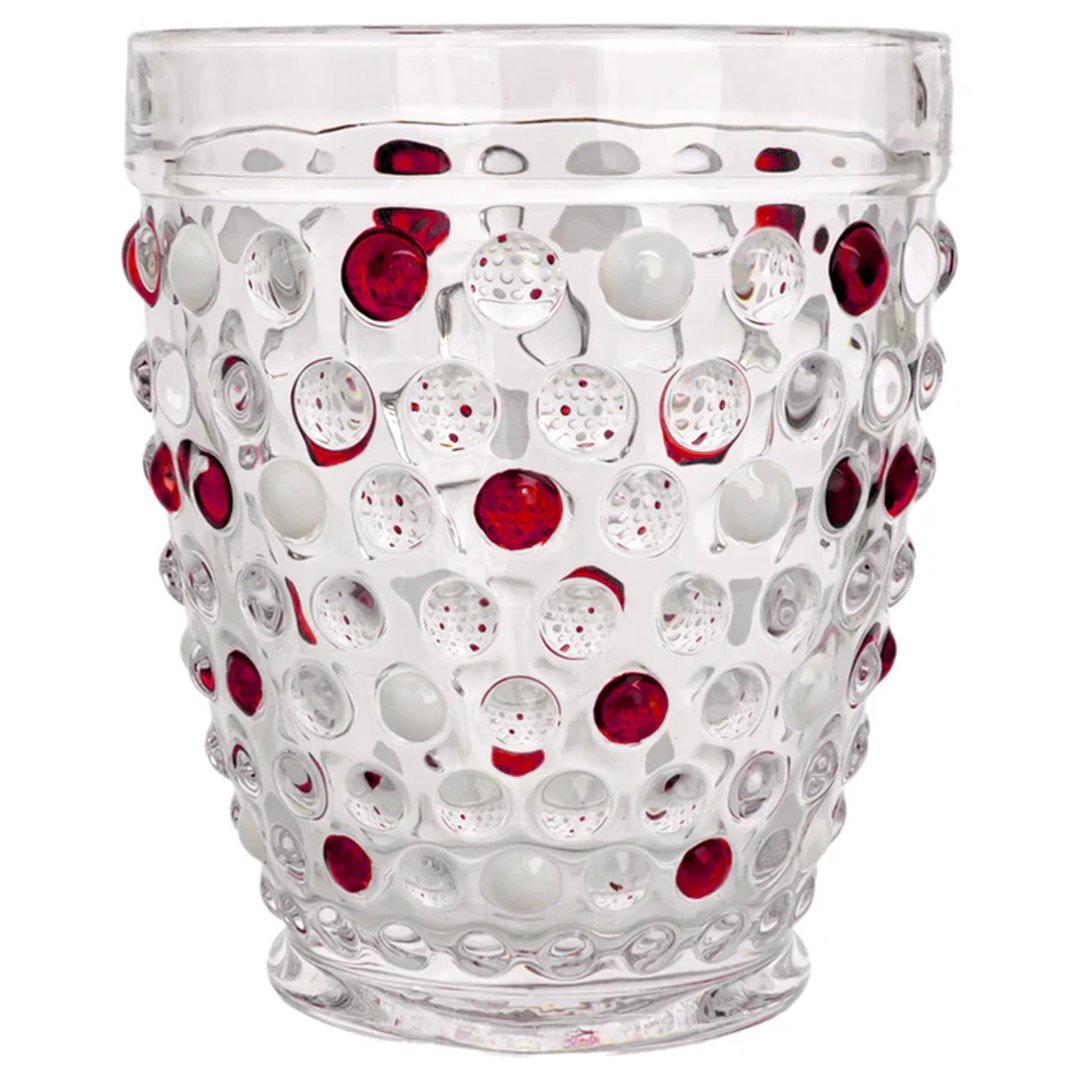 Red & White Hobnail Drinking Glass