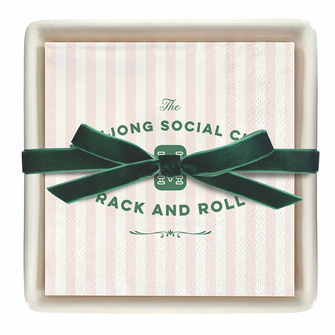Mahjong Social Club Rack & Roll Ceramic Tray/Napkin Set