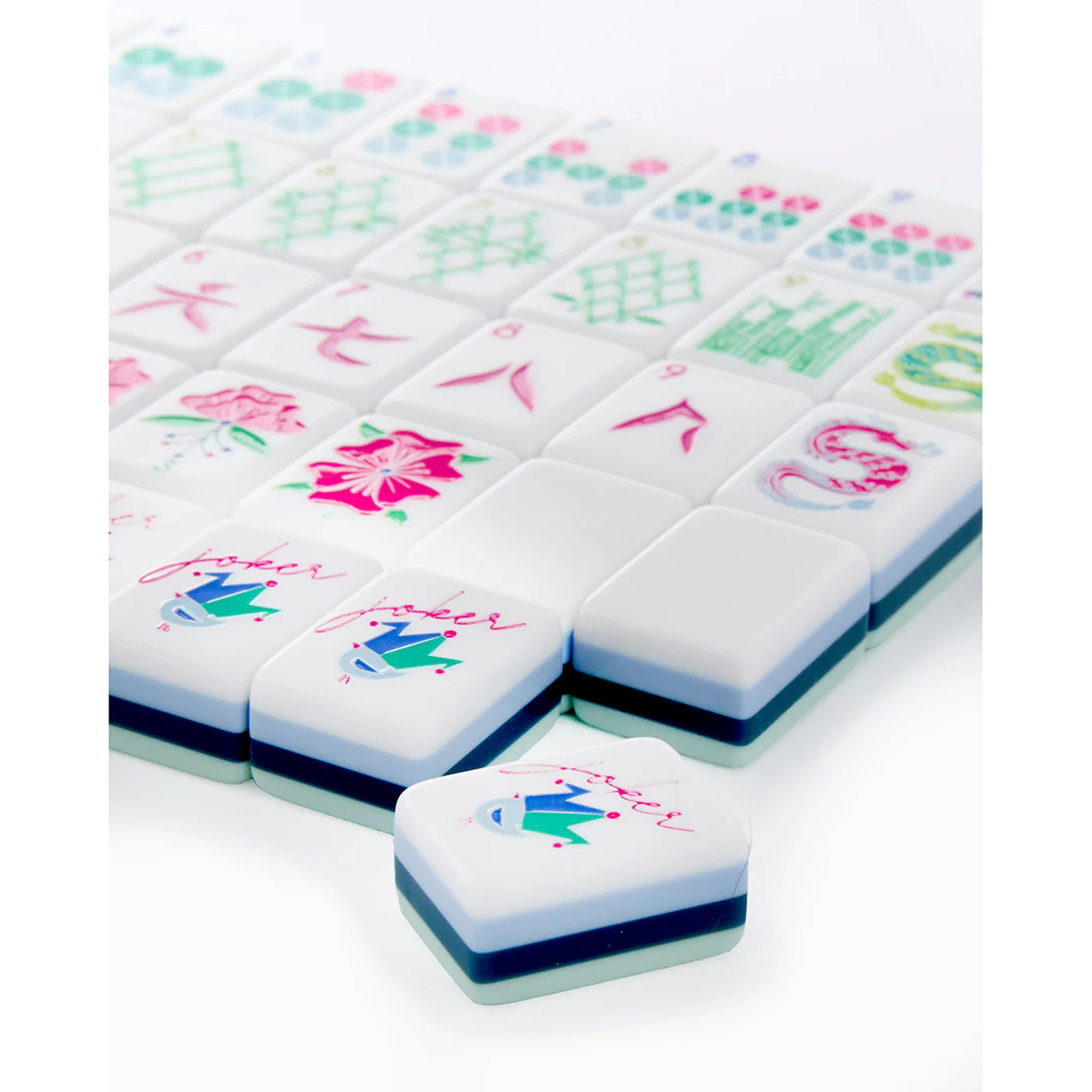 Introducing the Birdie Mahjong collection, inspired by the game's most eye-catching element - the vibrant blue and green Bird Bam! This set features a captivating interplay of navy, seafoam, and light blue tiles, guaranteed to turn heads at your next Mahjong night. These tiles are crafted from high-quality materials for lasting use, the Birdie line is perfect for players of all levels. Each set includes a complete set of 160 tiles, making it the ideal gift for Mahjong lovers or a luxurious upgrade for your game nights. So ditch the boring tiles and add a touch of elegance - Let's play Mahjong with the Birdie collection!