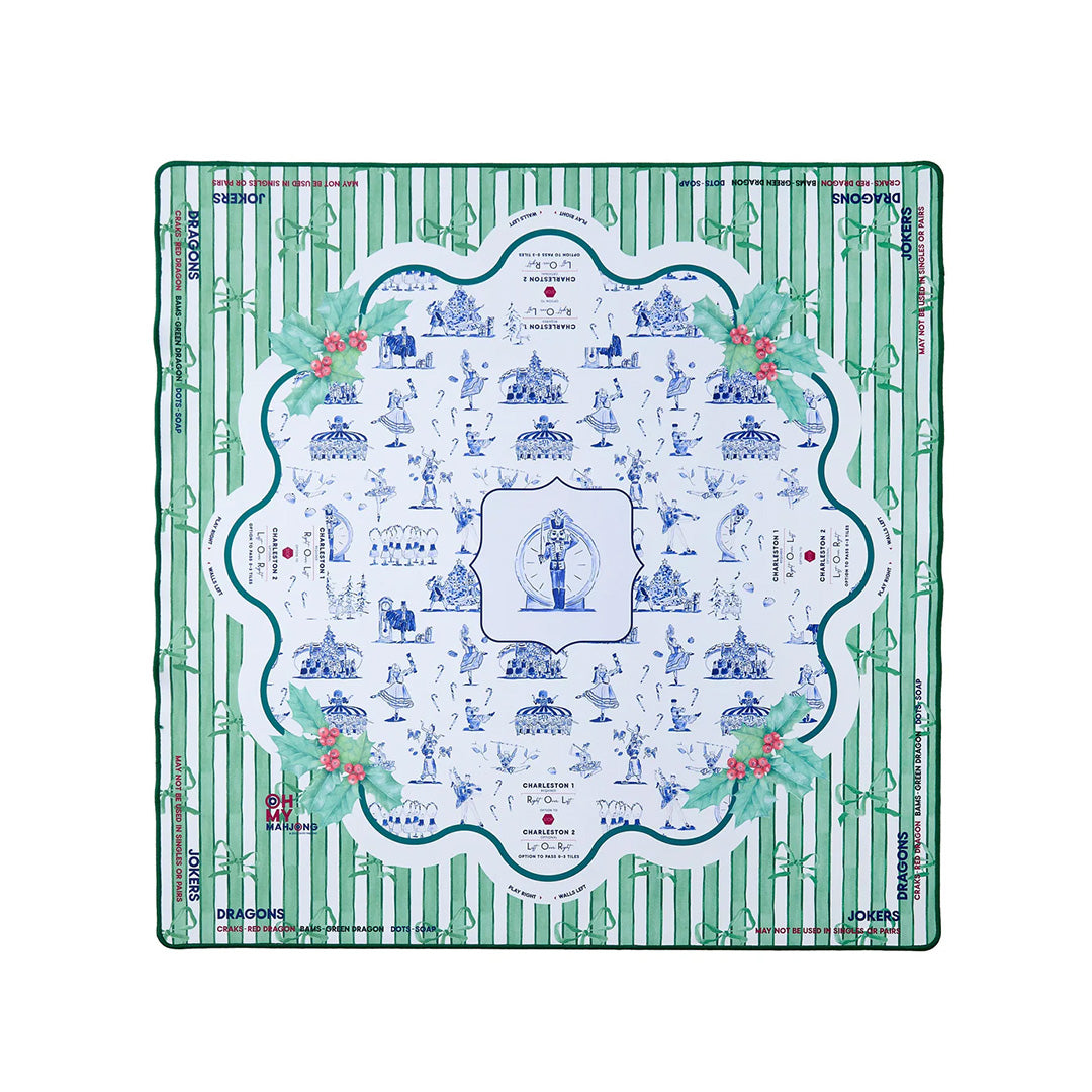 Step into a snowy dreamscape with the Twilight Waltz Mat, a magical holiday collaboration with Fort Worth-based watercolor artist Catherine Cartie. Inspired by the timeless charm of The Nutcracker ballet, this mat captures the elegance and enchantment of the season with swirling dancers, festive flourishes, and delicate nods to the classic tale. Complete with wintry shades of blue and white with cheerful pops of green and red, the Twilight Waltz Mat brings storybook beauty and holiday sparkle to your Mahjong table.