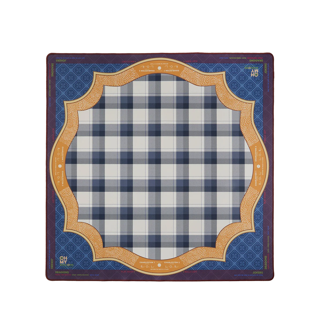 Introducing the Vanderbilt Mat — a distinguished and richly layered addition to your Mahjong setup, crafted for those who appreciate understated luxury and classic sophistication. Featuring a masculine-inspired plaid in deep blues, maroons, greys, and gold accents, this mat brings a warm, polished, and collegiate feel to your game night atmosphere.