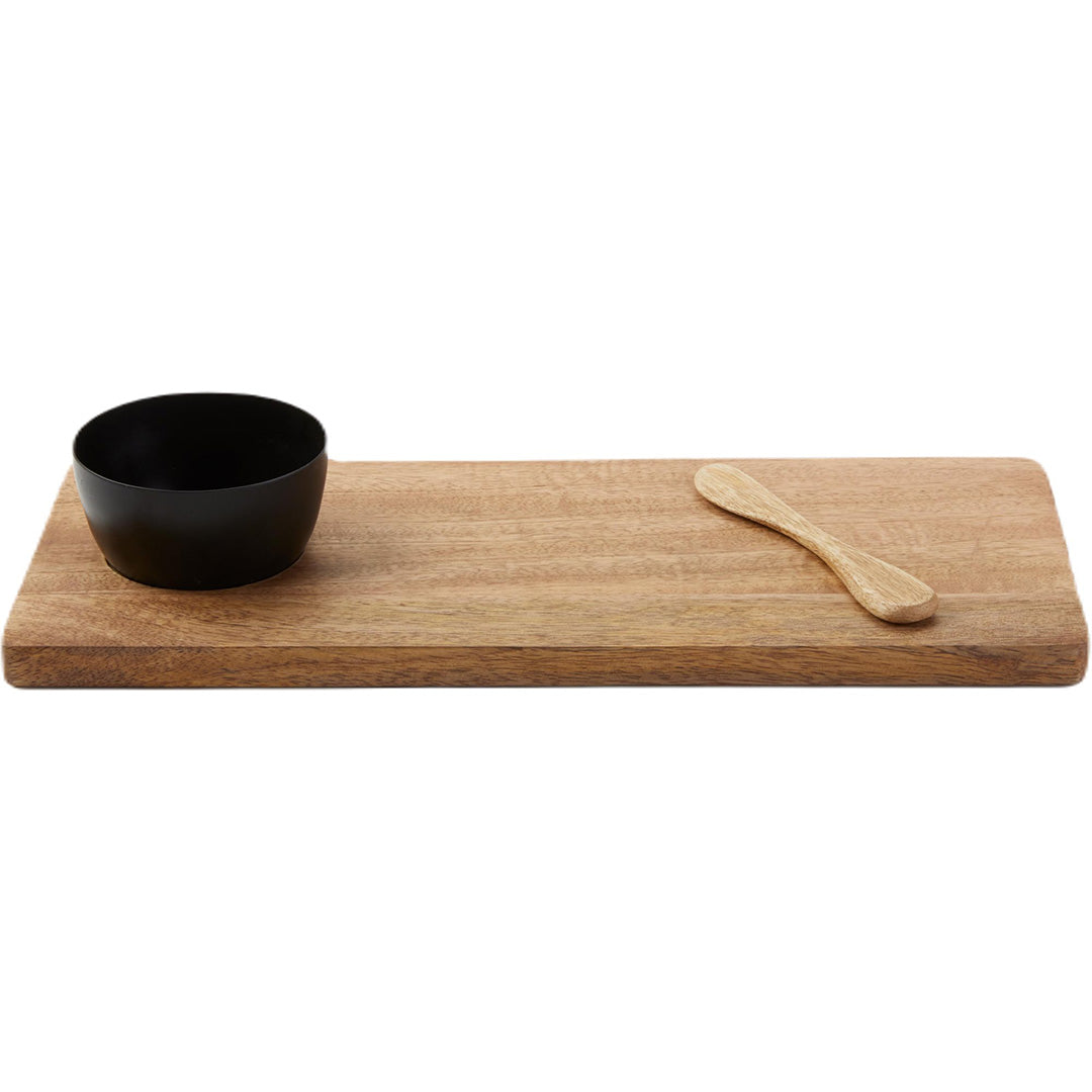 Present your appetizers with grace using this sophisticated entertaining wood board, featuring a dip bowl and spreader. Designed to marry style and practicality, it offers a refined platform for serving dips and spreads, enhancing both the visual appeal and ease of entertaining. Perfect for elegant gatherings and memorable moments.