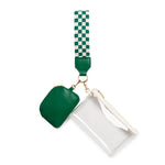 The Taylor Mini Wristlet is your new go-to for keeping essentials close without sacrificing style. This compact cutie features two interchangeable pouches—one sleek and solid, the other clear—attached to a wide printed wrist strap that brings all the Game Day vibes. Crafted from durable PU and transparent PU, it’s perfect for stadium regulations and statement looks. Just clip it on, load it up, and let your hands stay free while you cheer, snack, or snap pics.