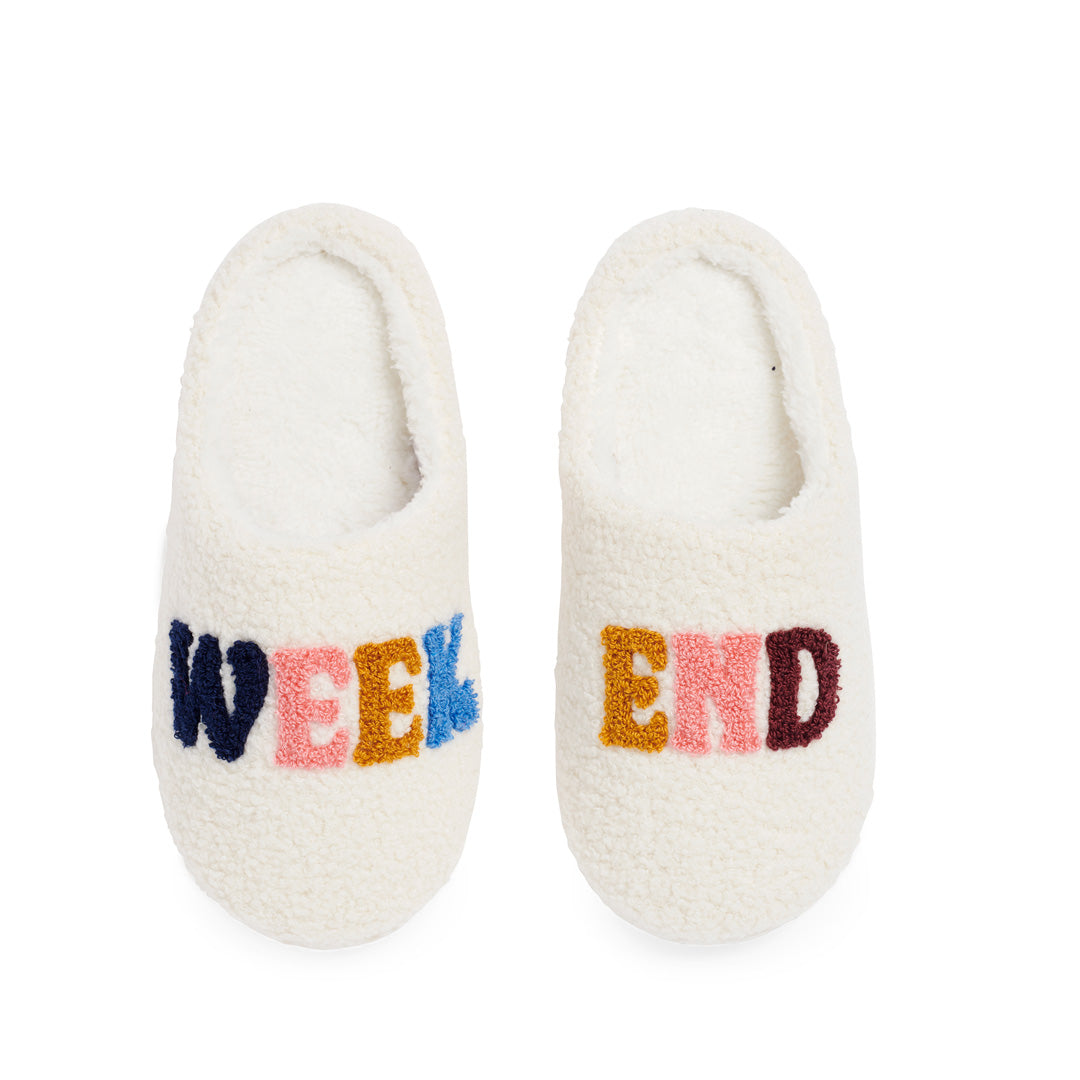 Say hello to cozy toes with our “Weekend” Slippers! These fuzzy cream-colored cuties feature colorful block letters that spell out everyone’s favorite word, adding a playful pop to your lounge look. Designed with a soft, plush interior and cushy sole, they're made for mornings with coffee or lazy days around the house. Pair them with our coordinating lounge sweatshirts and shorts—or mix and match to keep things fun and comfy all weekend long!
