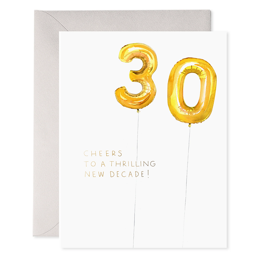 Celebrate turning 30 with a burst of fun! This vibrant birthday card features a bold helium balloon design that captures the excitement of a milestone birthday. Perfect for making someone's special day feel extra festive, it's the ideal way to send birthday cheer to the birthday star hitting the big 3-0. A playful pick for a memorable milestone.