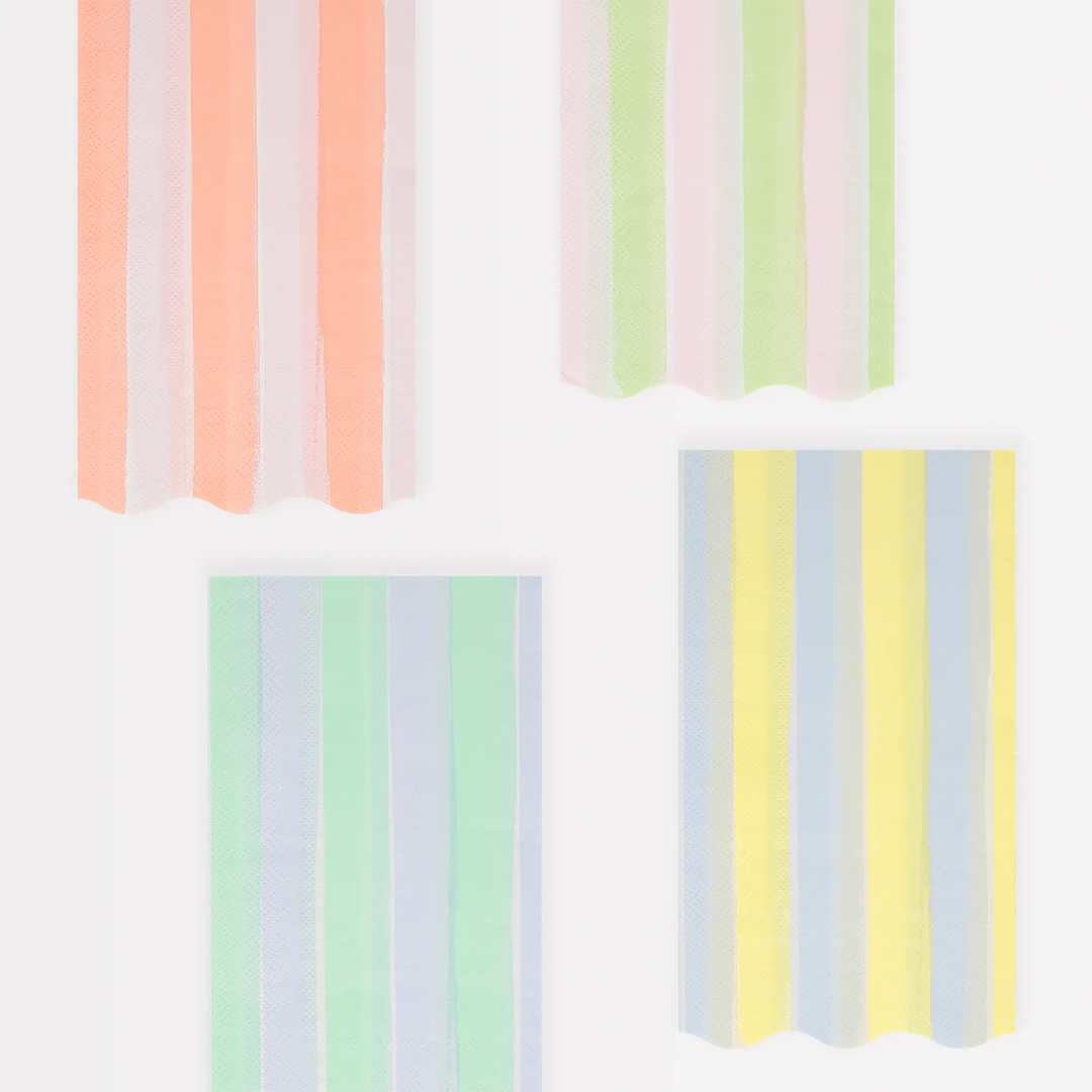 Painted effect stripes in fresh pastels are pure party perfection! These delightful guest towels combine soft color with timeless design, making them an instant upgrade to any table or bathroom. The charming wavy edge adds movement and personality, while the playful striped pattern brings joy to every use. Layer them across your dining table for visual interest, roll them artfully in guest bathrooms, or wrap them up as a gift for the entertainer in your life. They're perfect for garden parties, baby showers, spring brunches, and holiday gatherings—or simply for everyday moments when you want to feel a little more festive. The versatile pastel palette works beautifully with any décor style, making them an easy addition to your home. These towels do more than dry hands; they set a tone. When guests see these thoughtful touches, they know they're somewhere special. Whether you're hosting an intimate dinner, preparing for the season's celebrations, or just want to surround yourself with beauty, these striped towels deliver both style and warmth. They're the kind of small luxury that transforms ordinary entertaining into something memorable—proof that the best gatherings are made in the details.