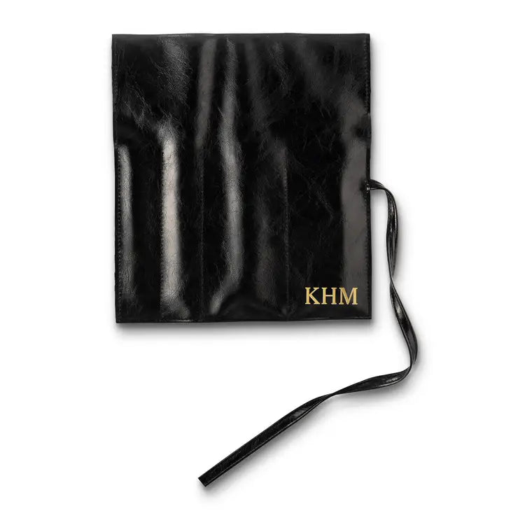PERSONALIZED MAKE UP BRUSH SET & TRAVEL POUCH IN BLACK
