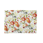 The Pumpkin Vine Placemat is a delightful addition to your Fall Collection, made from 100% cotton and printed with an illustrated pattern of pumpkins and green vines float against a bright white background! It will accent your home and decor with crisp, autumnal charm!