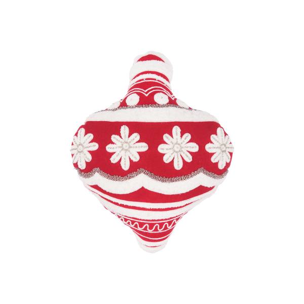 Celebrate the allure of Scandinavian folk art with this enchanting ornament-shaped pillow, inspired by Nordic aesthetics. Designed to resemble a beautifully decorated ornament with delicate lines, intricate dots, and floral motifs, this tufted and embroidered pillow introduces a playful and inviting element to any room. Its textured tufting adds depth, while the elaborate embroidery underscores its folk-art inspiration, creating a standout and festive accent. Ideal for adding a touch of Nordic sophistication and seasonal joy to any decor.
