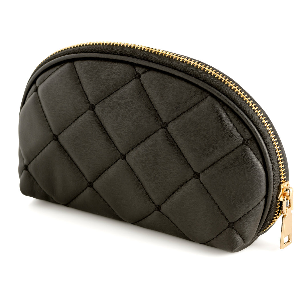 Say “Bonjour!” to your new favorite accessory, Shiraleah’s Mademoiselle Zip Pouch. Made from trendy quilted PU in a classic black color, this compact, crescent-shaped cosmetic bag is ideal to carry all your odds and ends in style. The Mademoiselle Zip Pouch is made in the same style as the Mademoiselle Wristlet, Card Case, and Camera Bag which can be combined to form one magnifique collection. Pair with other items from Shiraleah to complete your look!