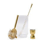 The Rentley Mixology Set 4 is a stylish collection of bar tools that provides everything necessary to craft the perfect cocktail or mocktail. This contemporary set is a refined addition to any home bar and is sure to impress your guests. The set includes a beaker, jigger, strainer, and spoon for all your mixing needs.