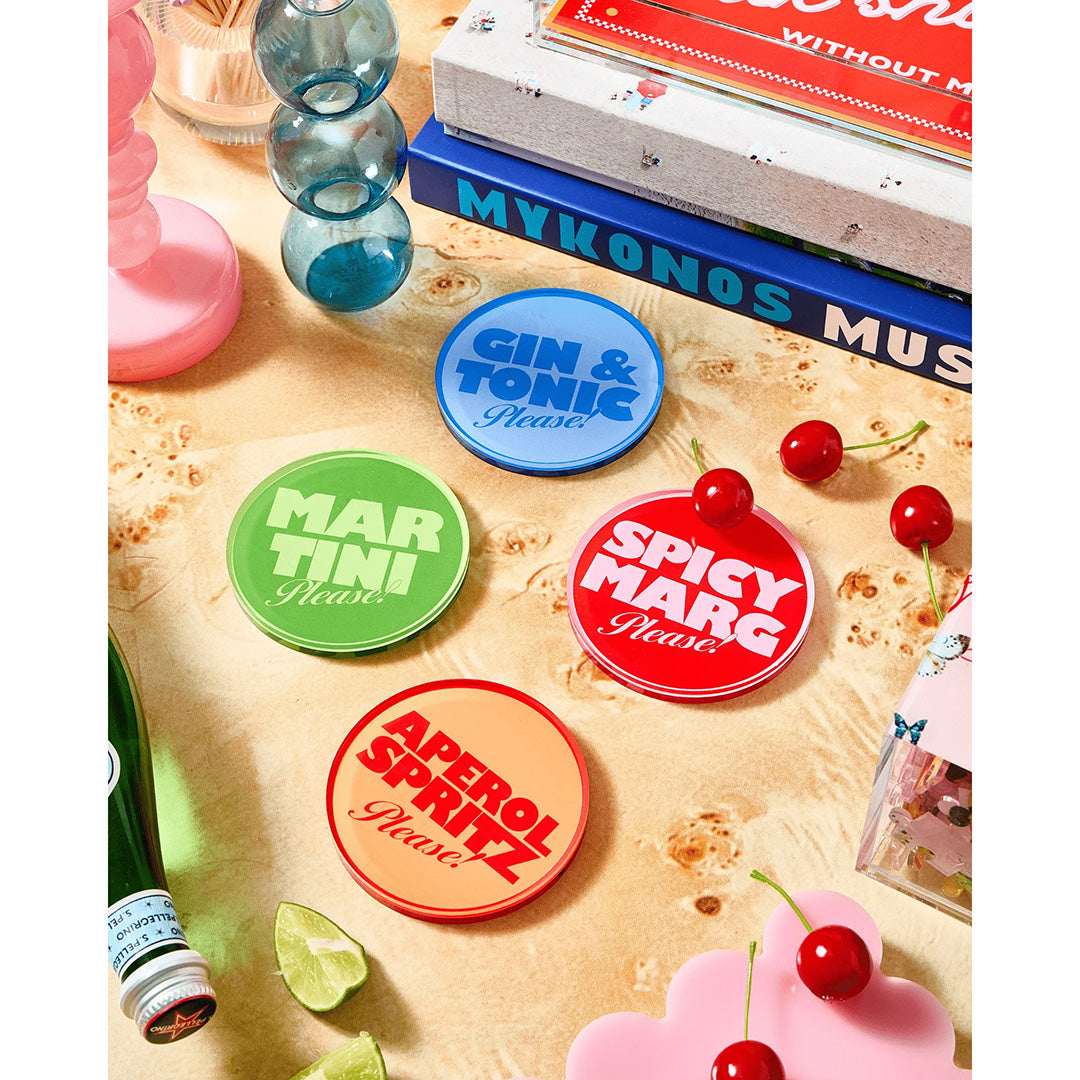 DRINKS ON ME ACRYLIC BOX COASTERS SET/4