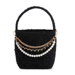 The Annie Top Handle Bucket Bag is your go-to glam piece for parties, date nights, and everything in between. Made from a textured black tweed-like fabric, it’s styled with a single structured handle and a magnetic snap closure to keep your essentials secure. A trio of removable gold and pearl chains add an extra dose of drama and charm. With an inner zip pocket and slip pocket, it’s got just the right amount of space to stash your must-haves.