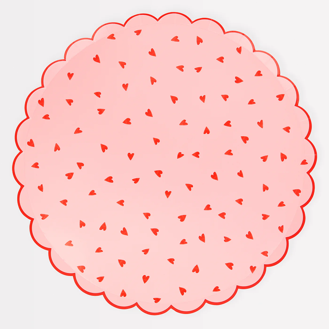 Set the mood for romance with these delightful dinner plates that blend contemporary style with vintage charm. Adorned with scattered hearts in gorgeous pink and red tones, each plate features a graceful scalloped edge that whispers elegance and whimsy. This eight-piece set is your secret weapon for creating memorable tablescapes—perfect for Valentine's Day dinners, engagement celebrations, bridal brunches, or any gathering where love is on the menu. The playful heart motif sparks joy and conversation, while the sophisticated color palette complements both casual and formal settings. Crafted from durable paper, these plates make entertaining stress-free; simply serve, enjoy, and toss. Transform an ordinary meal into an extraordinary experience with tableware that celebrates the sweetness of the moment.