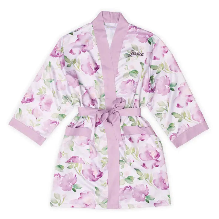 WOMEN'S PERSONALIZED EMBROIDERED FLORAL SATIN ROBE - LAVENDER