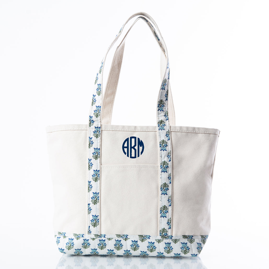 Aqua Block Print Medium Classic Tote
