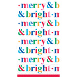 Celebrate the season with a pop of color! These vibrant guest napkins feature the cheerful "merry & bright" message repeated in a festive rainbow palette, adding a joyful touch to any holiday gathering. Perfect for spreading holiday cheer, these napkins will brighten up your table and delight your guests with every use.