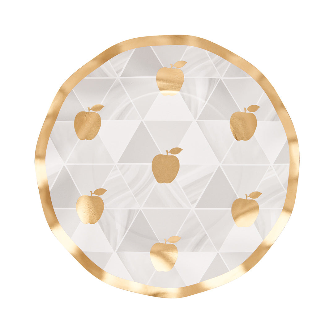 Enhance your table setting with the refined elegance of GOLDEN APPLE SALAD PAPER PLATES by Sophistiplate. These beautifully designed plates feature a subtle golden apple motif, offering a sophisticated touch to any event. Crafted for convenience without compromising style, they are perfect for serving salads or light dishes while maintaining an air of understated luxury.