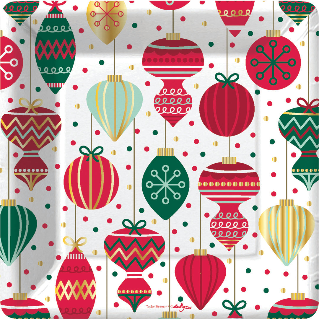 Create a festive and elegant tablescape with these holiday paper dinner plates! They feature a pattern of opulent, multicolor ornaments accented by gold foil and gold metallic ink. Set them on the table or beside the buffet for a seasonal, easy to clean set up! This plate comes in a set of 8.