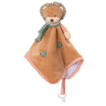 Meet Mael the Loin Blankie, a lovable twist on the classic lion plush that combines comfort and play in one cuddly companion. Wrapped in a gentle orange-toned blanket accented with lively orange and white stripes and playful green patchwork, Mael is designed to delight both child and caregiver. His practical pacifier attachment keeps pacifiers close and clean, making him as useful as he is adorable. Adding to his charm, Mael sports a soft, plush green scarf that makes him even more snuggly and huggable. Perfect for nap time, playtime, or anytime a little extra comfort is needed, Mael brings warmth and joy to your child’s day.