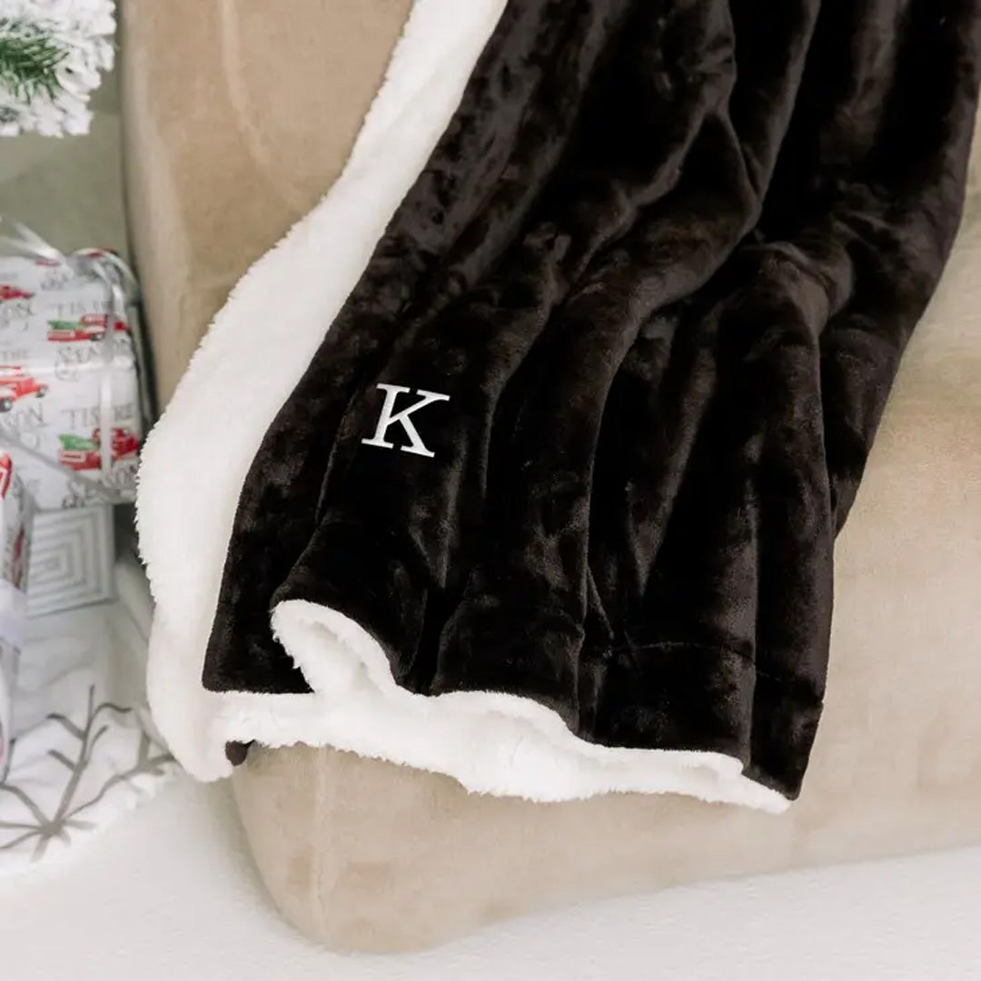 PERSONALIZED EMBROIDERED PLUSH 50"x60" SHERPA LINED THROW BLANKET CHOCOLATE BROWN