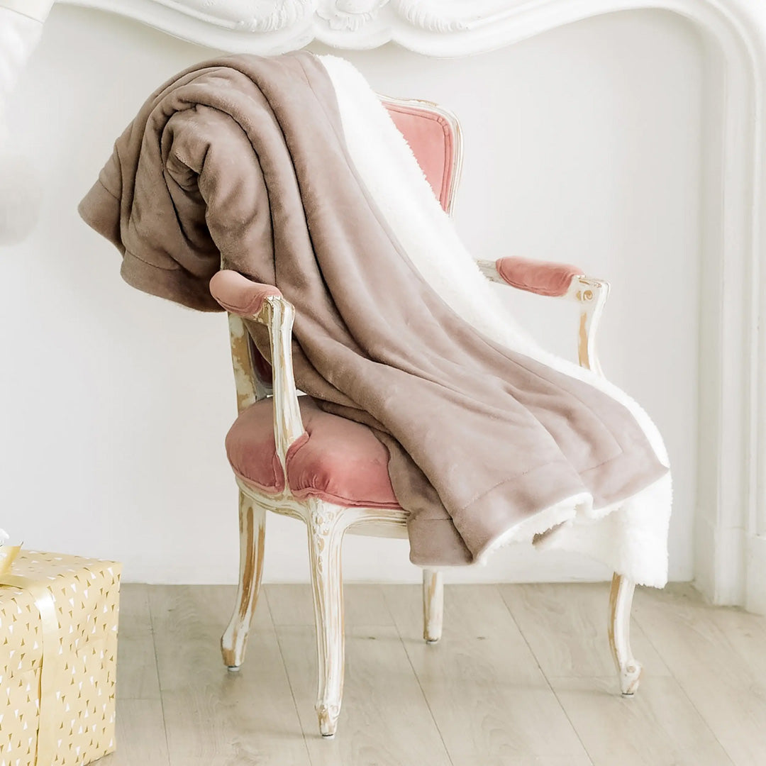 PERSONALIZED EMBROIDERED PLUSH 50"x60" SHERPA LINED THROW BLANKET LIGHT PINK