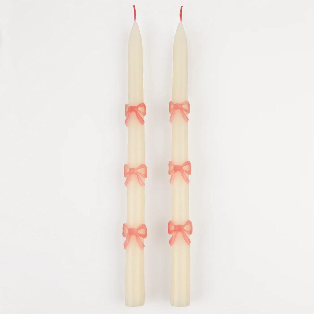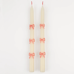 PINK BOW TAPER CANDLES SET OF TWO