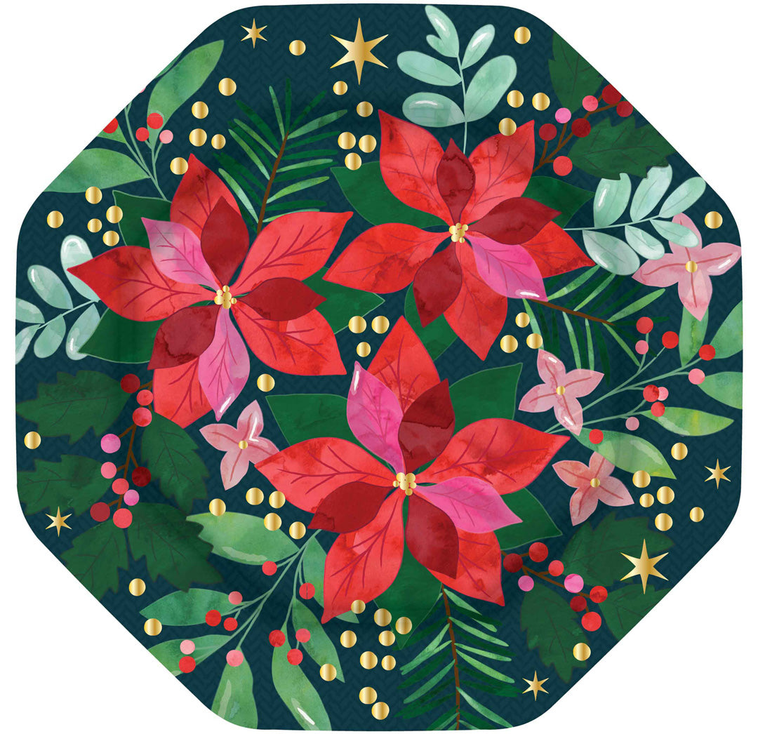 Serve holiday treats in style with our Poinsettia Paper Dessert Plate. Featuring a classic poinsettia design in vibrant red and green, these plates bring timeless holiday elegance to any table. Perfect for desserts, cookies, or small appetizers, they add a festive and refined touch to your seasonal celebrations.