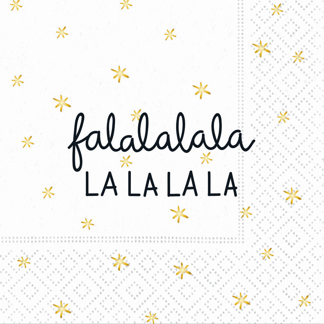 Get into the holiday spirit with these festive "falalalala" beverage napkins! Adorned with playful gold foil stars on a crisp white background, these napkins bring joy and cheer to any holiday gathering. Perfect for cocktail parties or casual get-togethers, they add a dash of sparkle and fun to your table setting.