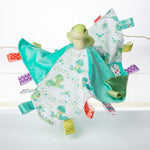 Taggies Sniggles Snake Character Blanket is a delightful companion designed to captivate and comfort your little one. This plush snake, crafted from super soft fabric with charming embroidered details, rests atop a cozy 13×13" citron green satin-lined blanket. Featuring 16 tactile Taggies ribbons, it offers endless sensory fun that helps soothe and engage babies through gentle crinkly sounds and soft textures. Perfect for naptime, playtime, or on-the-go snuggles, Sniggles brings a unique, playful touch to any nursery with its original Mary Meyer artwork and friendly snake print. Easy to care for with machine wash and air dry.